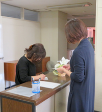 傍聴したい会議の当日、市役所本館3階の議会事務局で受付票に住所、氏名を記入してもらいます。傍聴券を配付しますので、議場(委員会室)内の傍聴席で傍聴してください。傍聴席を25席(記者席6席除く)設置しています(※委員会室は5席)。